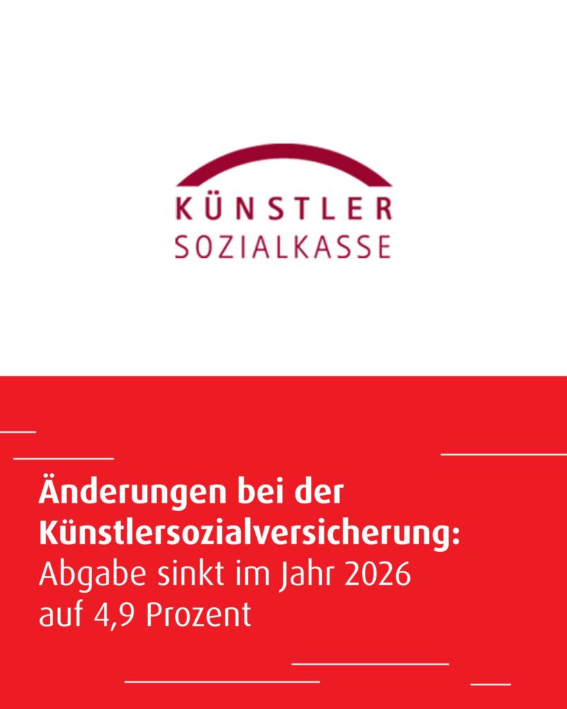 Das Bundesministerium für Arbeit und Soziales hat angekündigt: Die Künstlersozialabgabe sinkt im Jahr 2026 auf 4,9 %. Das entlastet abgabepflichtige Einrichtungen – auch Musikvereine – und sichert gleichzeitig die Finanzierung der Künstlersozialversicherung.